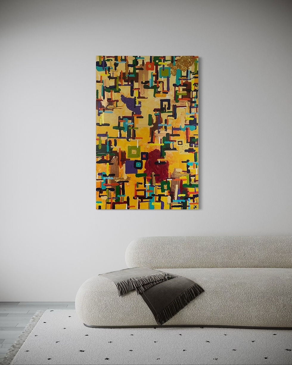 Without pretence, she paints as a way of breathing — an outlet that mirrors both her inner world and her curiosity for what lies beyond. Guided by intuition and a boundless sense of wonder, Crommelynck invites the viewer to pause, to look deeper, and to find resonance in her golden-hued fragments of silence and vitality.