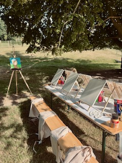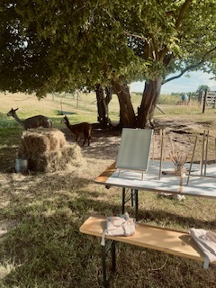Onder het gebladerte van grote bomen, met uitzicht op de weides en het zachte gezelschap van alpaca’s, dompelden jong en oud zich onder in pure creativiteit. Of je nu een ervaren schilder bent of voor het eerst een penseel vasthield — de rust en het ritme van de natuur zorgden voor een inspirerende sfeer waarin iedereen zijn eigen meesterwerk kon creëren.